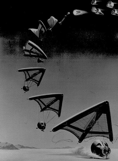 Take a look at the photos below. We picked up a nice model of the Gemini with the Rogallo wing that was the early recovery proposal. This is looks to be a built up from a kit (it was fully built when we bought it). We have it displayed with an old Gemini book with the landing on the cover. Here is a link to some data on the wing.