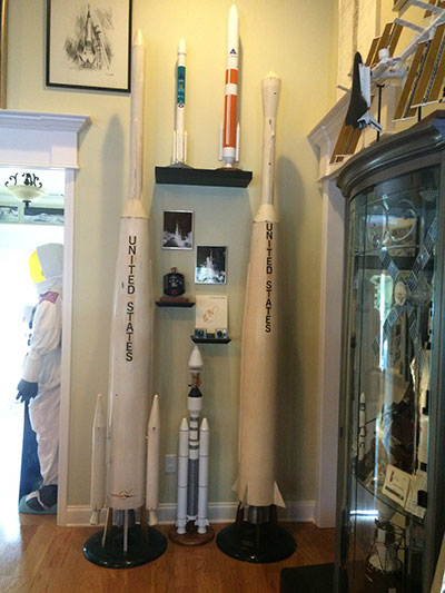 The latest addition to the Kollection is a frangible nut from STS-108. The nut was used to secure the solid rocket booster to the mobile launch platform and there was a total of eight per flight — this one is marked six. It was another eBay find and the seller is a former space shuttle employee. He was in the program for 32 years and retired at the end of the program as the production manager for the SRBs. The artifact is doubly special to me as not only was it a piece of critical equipment for a shuttle launch, it was for STS-108. That particular flight was the first launch my wife Cheryl and I had ever attended together. We saw the launch from the causeway after seeing it scrub from Titusville. For those who may not connect the dots or are new to cS, Cheryl and I had been married for 20 years and with a sad heart I must tell that she passed away in December of 2007 in an accident while riding a horse. Yes, I have been blessed with two wives that have embraced the passion for collecting space Cheryl for 20 years and now Jackie for seven. Now the grandchildren are catching the fever with drawings of rockets and games that include space shuttles.