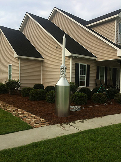 Looks like the inside of the house is filling up these days so we are working on a little yards art project. The plan is to have all the exposed surfaces being aluminum or PVC. That way it can survive the blazing sun here in the Savannah area. The details will be missing the corrugation on the lower end of the mail body as I cannot figure out what would work there so a plain aluminum skin wrapped around a inner skeleton of pressure treated pine. The LES body tube will go through the tower so the purists out there just turn away. More to come as we move along.