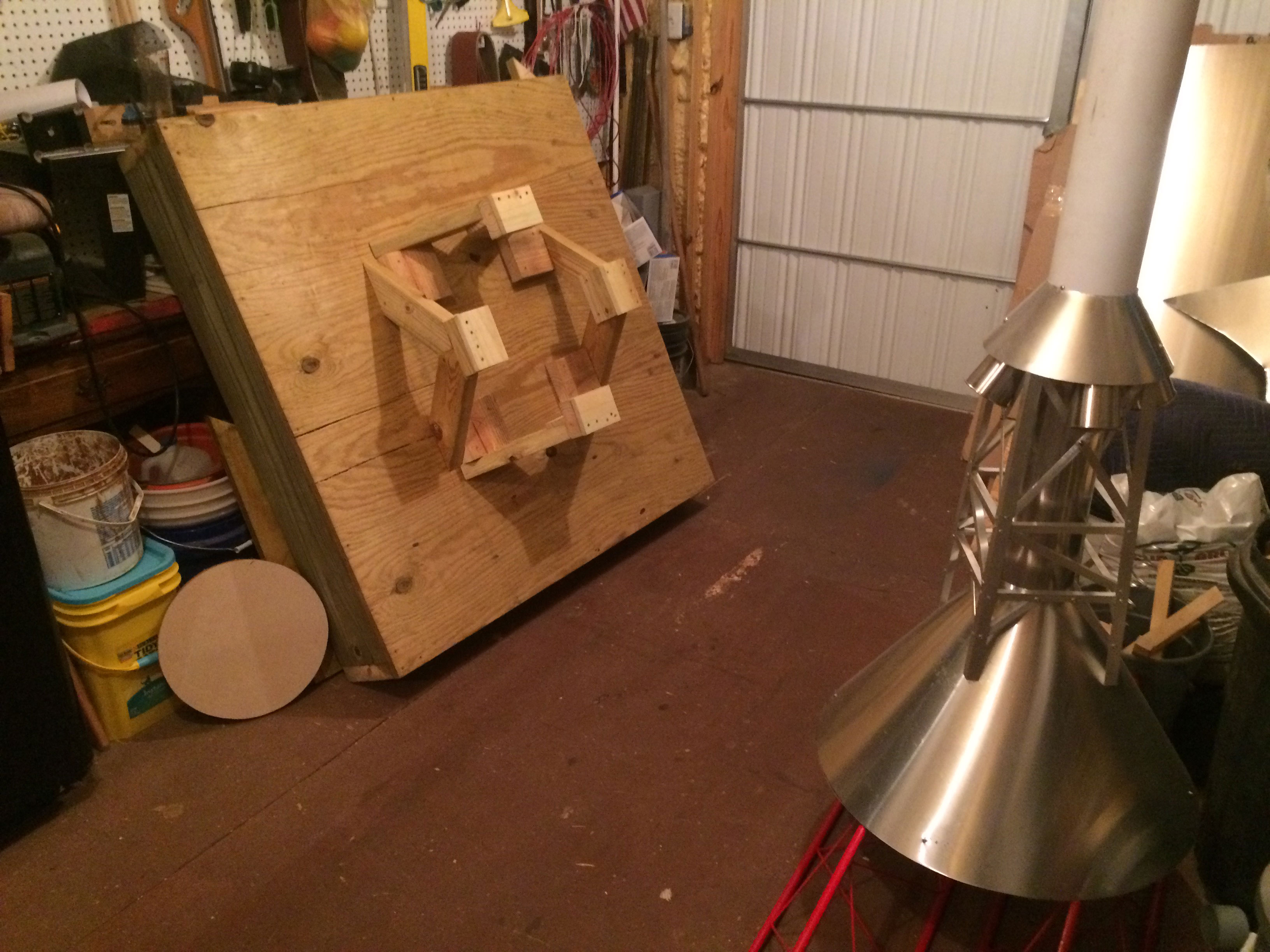 The Little Joe II yard art project is moving along. The fins are capped off and complete, the engine bells are installed (yes they are Stainless Steel buckets). Also the Launch Pad (display stand) is nearly complete. I am hoping to be finished in the next few weeks.