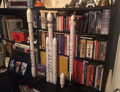 We have added the new Falcon 9 to our Kollection. You can see the flying model in the photo with added 3D fins and legs. The Falcon Heavy is a work in progress.