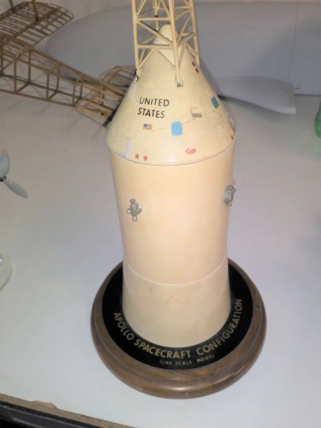 I recently bought this on eBay. It's an unusual piece. It's 1/40th scale. It was found in a storage locker and I first got the command module, the service module and the escape tower.The escape tower is almost identical to the Precise Models and Hyatt models part but this one is better quality in terms of welds and stock used. It's mostly round vs. the others have some flat stock.