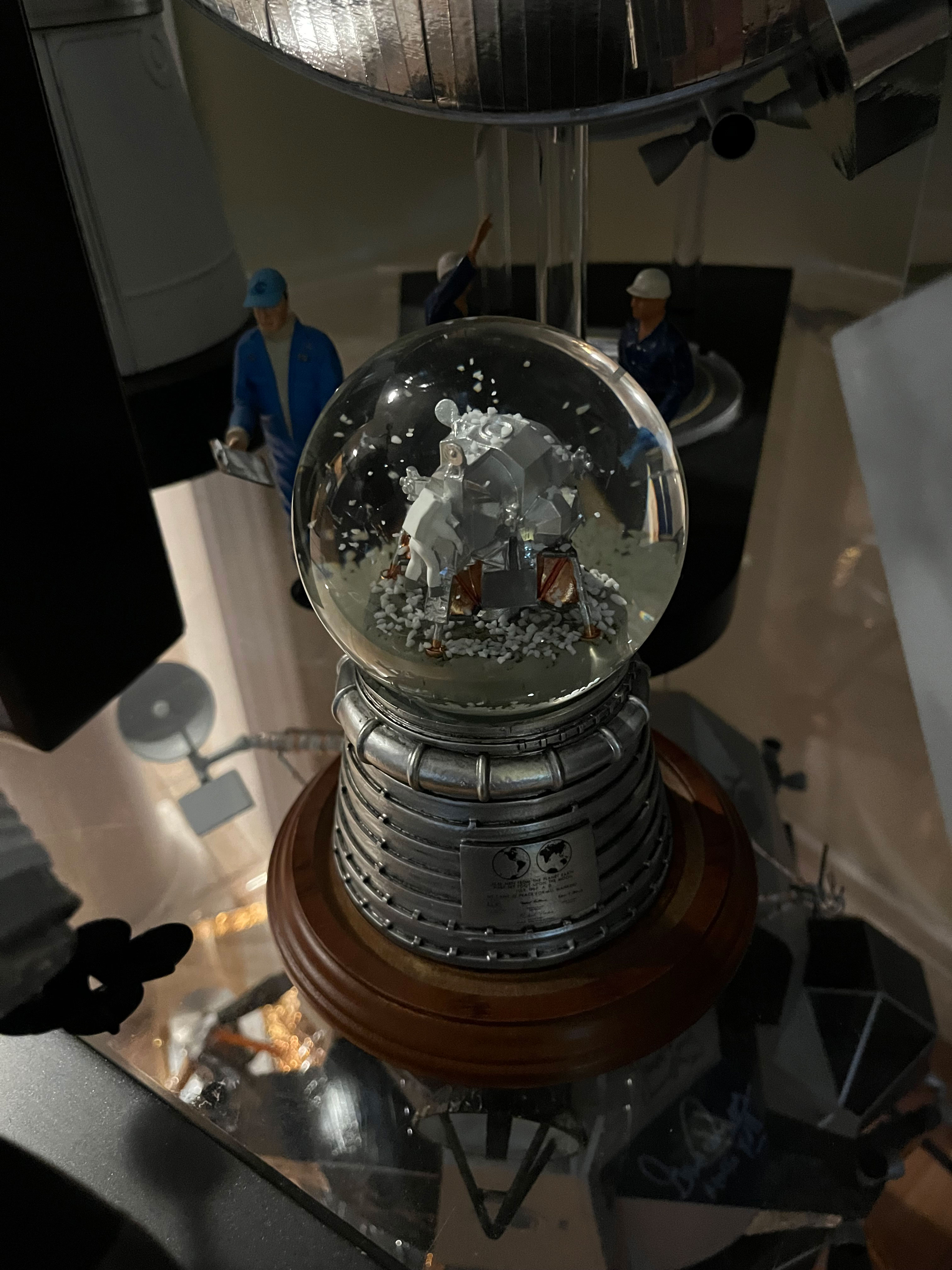 Given the season, I thought it would be interesting to ask if collectors here have any spaceflight or space exploration-themed snow globes?Are there any vintage examples from the 60s or 70s? I have one in my collection: a snow globe created by the Atlas V Business Development division at ILS/Lockheed Martin after the first launch of the rocket on Aug. 21, 2002. As a decal at the bottom notes, "This globe contains dust particles from the Atlas tanks." The globe has yellowed over time, the gold stars and "Atlas tank dust" has become somewhat stuck to the disc holding the Atlas V rocket model and the disc itself has become free of the bottom of the globe, so shaking it is no longer ideal. Still, it is a neat memento of a maiden launch.