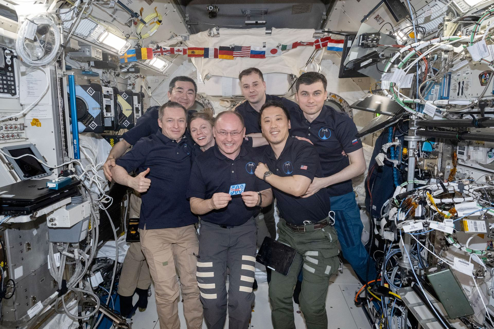 It appears the 500 Days patch has been updated to match the other versions. Sergey Ryzhikov is holding a patch commemorating his 500th day cumulative in space across three spaceflights.  |