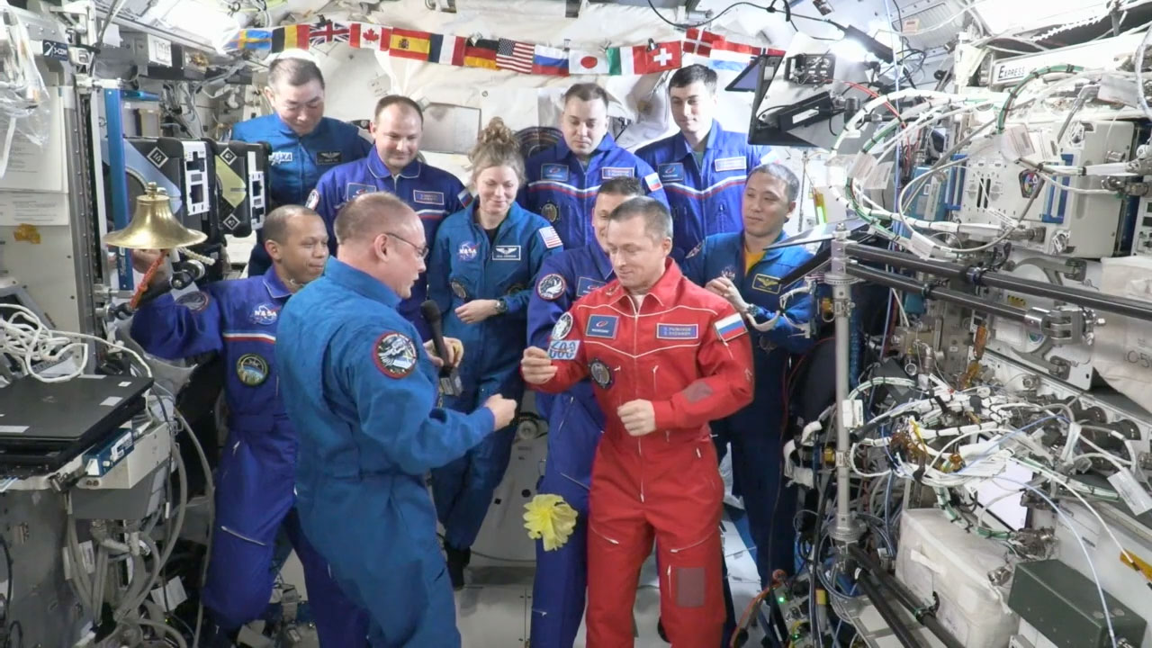 Roscosmos cosmonaut Sergey Ryzhikov reached his 600th day in space on Dec. 5, 2025. He received his 600 Days in Space patch from Expedition 74 commander during a change of command ceremony, when as Expedition 73 commander, Ryzhikov handed over control of the International Space Station.  |