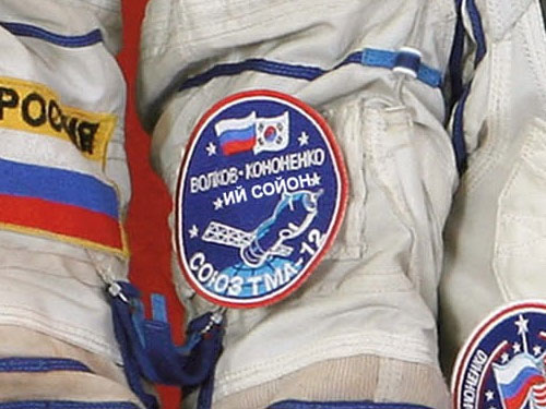I think the patch in the NASA photo is retouched as it probably had "Ko San" on it; the new embroidered version has "Yi Soyeon". |