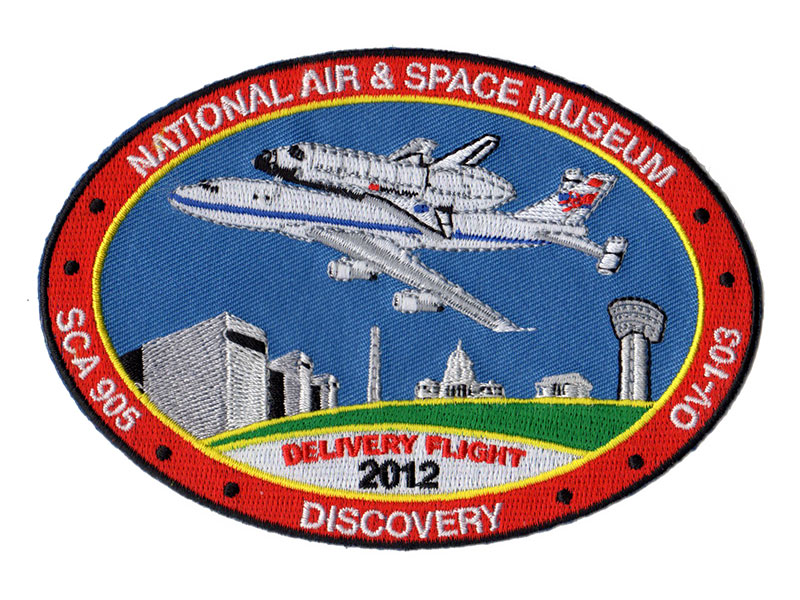 NASA Shuttle Carrier Aircraft pilots museum ferry flight patchesBeginning in April 2012, NASA's modified Boeing 747 Shuttle Carrier Aircraft (SCA) will be embarking on its final space shuttle ferry flights, delivering orbiters Discovery (OV-103), Enterprise (OV-101) and Endeavour (OV-105) to Washington, DC, New York and Los Angeles for public display. To mark this milestone, the SCA pilots had designed flight patches. According to the emblem's artist Tony Landis, "they wanted to have something special just for them, which is why each design has the 747 SCA included." Only 300 sets of the three patches were produced for the pilots, to be distributed as they fly the space shuttles to their museum displays.  Discovery's patch features the Capitol Building, the Lincoln Memorial and the Washington Monument, as well as the Smithsonian National Air and Space Museum and the Donald D. Engen Tower at its Steven F. Udvar-Hazy Center, where the shuttle will go on display. Weather permitting, the SCA will fly Discovery to Washington Dulles International Airport on April 17, 2012.  Enterprise's patch adapts the same design and colors as the 1977 Approach and Landing Test program logo, which first paired a shuttle with the SCA. Enterprise will be flown to John F. Kennedy International Airport in New York on April 23, 2012, to await being barged this summer to the Intrepid Sea, Air and Space Museum.  Endeavour's patch features an overhead view of the shuttle riding piggyback on the 747 as they fly into the sunset, completing more than 800 flights for NASA 905, the original shuttle carrier aircraft. Endeavour is targeted to depart for Los Angeles International Airport and the California Science Center in September 2012. |
