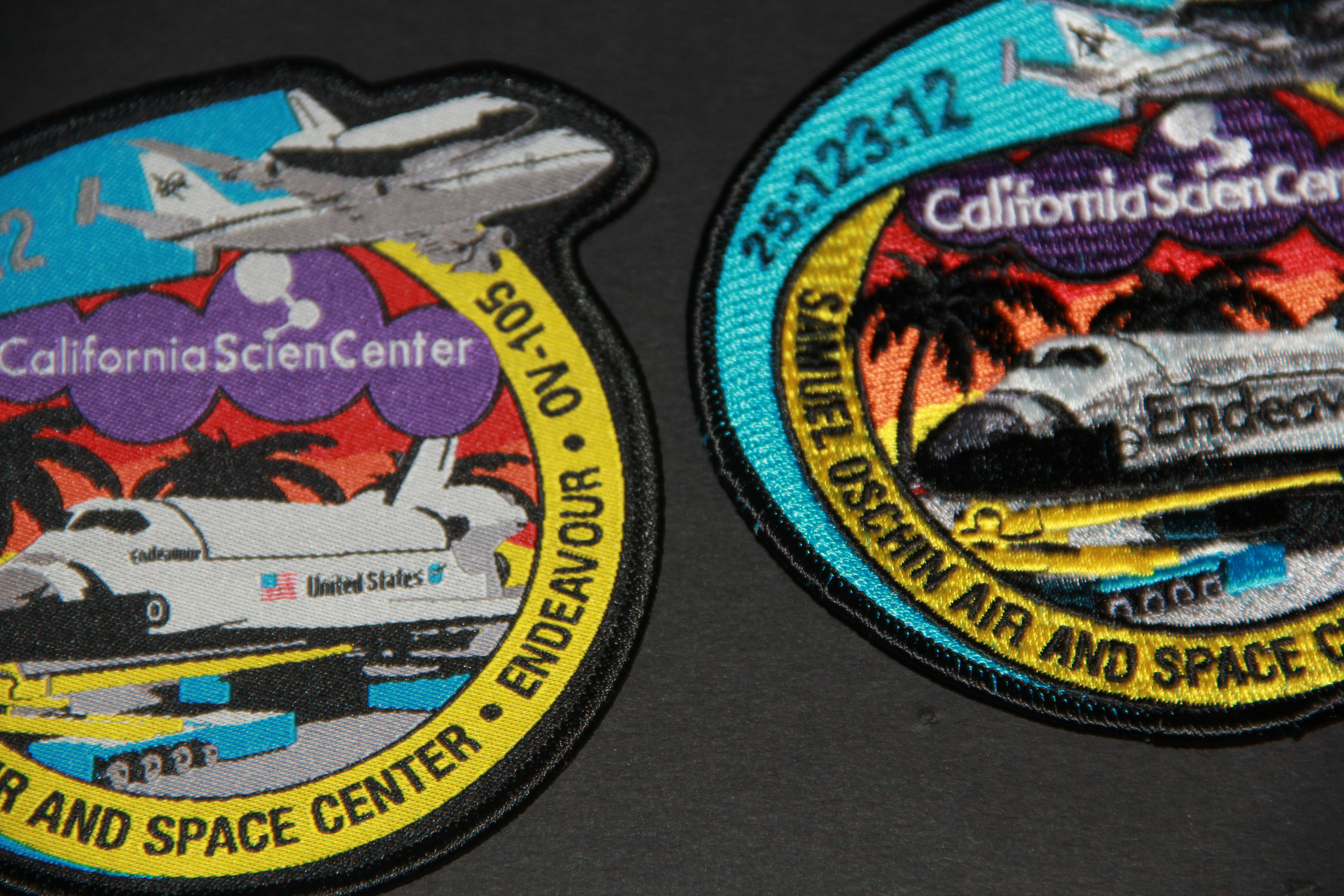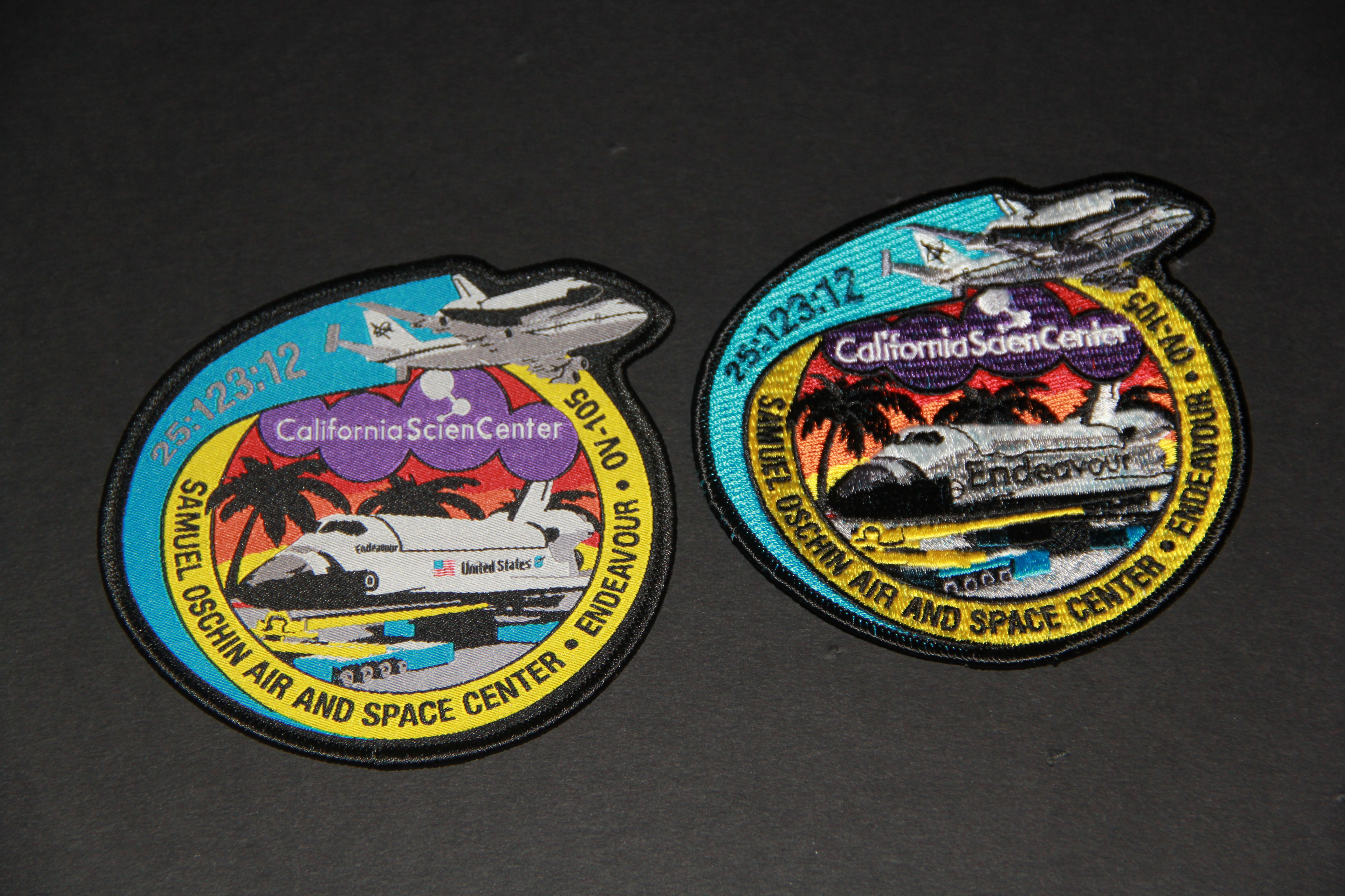 I called the California Science Center store (213-744-7422) on Saturday and purchased two each of the woven patches at $4.99 a piece and the fully embroidered version at $7.99 a piece, plus $3.00 shipping. The young lady who took my order asked me how I came to know about the patches as they've apparently had quite a few inquiries and orders from out of state. I told her to get ready for more.  |