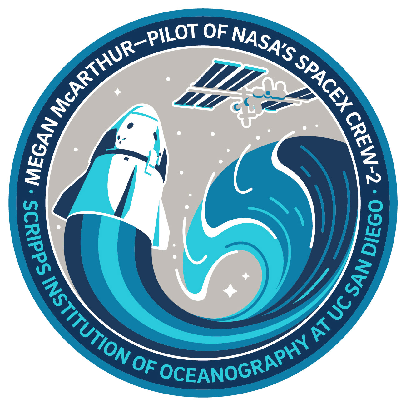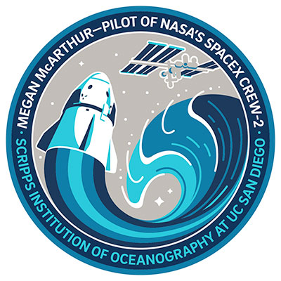 The Scripps Institution of Oceanography of University of California, San Diego has created an insignia in honor of alumna Megan McArthur flying on SpaceX's Crew-2 to the International Space Station.The emblem, in decal form, is being given out this week to UCSD students.  | |