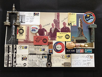 It was 45 years ago this year when the rollout of the last Apollo/Saturn launch vehicle and spacecraft occurred at Launch Complex 39 of NASA's Kennedy Space Center in Florida. It was on March 24, 1975, when our nation's final Apollo/Saturn rocket and spacecraft (AS-210) were transported from the gigantic Vehicle Assembly Building (VAB) along the rock-filled crawlerway to Launch Pad 39B, about a 4 mile trip lasting just under 7 hours. Below is another astrophilately and memorabilia panel display that I thought would be fun in sharing — as a tribute — to one of the unsung heroes of the space race to the moon during the 1960's. It's a massive two-story mobile-tracked machine that crunches along over crushed river rock, usually never going over one mile per hour.  Known as the Crawler Transporter (CT), of which two were built costing about $14 million apiece by the Marion Power Shovel Company in 1965, made the trip about 300 times carrying on top and transporting everything from the first Saturn V rocket for the Apollo 4 (AS-501) mission in 1967 to Space Shuttle Atlantis (STS-135) for the last shuttle flight in 2011. But even before Apollo 4, there had been a Saturn V "rollout" — for the very first time — using a facilities "pathfinder" fit-check test vehicle, known as AS-500F, in May 1966, and with the same test vehicle being transported back to the VAB for the first "rollback." Yet that creation, 131 feet long and 20+ feet high, has turned out to be so well-designed that it is one of the few major pieces of Apollo-era technology still in continue use for human spaceflight. Each CT is a perfectly level platform, a flat top, built atop a vast infrastructure of heavy steel support that is the size of a baseball infield area. The twin CT's are powered by 16 electric traction motors fueled by 4 V16 diesel engines. When in operation, a crawler consumes 150 US gallons of diesel fuel per mile. The CT, though modified again after the shuttle program, is still the largest self- powered land vehicle in the world with 8 tracks per vehicle containing 57 shoes per track. Each tread shoe weighs almost a ton, wow! During the Apollo/Saturn program, a mobile crawler weighed just over 6 million pounds, equal to 1,000 pickup trucks, that could transport 14 million pounds to the launch pad, or the weight of 20 fueled 777 jet airliners. It took at least 14 highly trained engineers and technicians to operate a CT during an Apollo/Saturn rollout from the VAB to either one of two launch pads. Depicted in the display are the only known "carried" Apollo/Saturn launch vehicle and spacecraft postal covers and cards. They can be seen at the lower level of the panel with two different cover types and a postcard showing both sides. But don't laugh! While two of the three covers, seen at the far-left of the panel, seem primitive or crude by their "simple" printed cachets, well — they are, since the rollout cover event for the Apollo-Soyuz Test Project (ASTP) was my very first cachet cover design attempt as a first year college student. While attending the rollout as a NASA invited guest, I can recall quite well thinking to myself that rollout covers had been placed aboard Mobile Launcher-1 with a 223-foot tall Saturn 1B rocket, its three-man Apollo spacecraft and tucked-away Soyuz docking module, were all sitting atop the crawler and mobile platform as the journey was getting underway early that morning. Several stamped covers, along with three postcards, were placed aboard Mobile Launcher-1 (ML-1) and stored inside an equipment cabinet on the "B" instrumentation level. They had been placed inside ML-1 a couple days earlier and made the entire 7-hour long trip starting at 8 a.m. with a "first motion" and ending about 3 p.m. on March 24, 1975. The covers were not able to be retrieved from ML-1 until the next day and were posted at KSC on the 25th. One of the top CT/ML instrumentation workers, a veteran of every rollout from the Apollo/Saturn era, took the covers aboard and signed each one afterwards. To the best of my knowledge, they're the only "carried" or "placed/located aboard" covers for an Apollo/Saturn space vehicle rollout, ever. Just about all of the items displayed pertain to AS-210's rollout in March 1975. The color photos of the Saturn 1B rocket going to its pad and with the astronaut crew of Stafford, Slayton and Brand were photographed by Cecil Stoughton, the official White House photographer for President Kennedy's administration. Stoughton, a big space fan, was on photo assignment by Marion Power Shovel Co. in Ohio for the ASTP mission, builders of the twin CT's and one of the largest manufacturers of earth moving equipment and machines. Among the invited guests for the final Apollo/Saturn rollout was Apollo 7 astronaut Donn Eisele, who was wearing one of the Marion's "Dig In, Do It Better!" pinback buttons. The exhibited button, seen here on Slayton's right side, is the same one actually worn by Eisele on the last-ever Apollo/Saturn rollout day. At that time in 1975, Eisele was a sales manager for Marion and attended the rollout as a company representative at the space center. He flew on the first manned Apollo spaceflight in Oct. 1968, the first Saturn 1B that carried US astronauts into space. Going back to the early 1960's as the Apollo program was getting underway here in Florida, the huge crawler was spawned from "doodles" or rough sketches of a mobile-type system drawn by Dr. Kurt Debus, the first director of NASA's Kennedy Space Center since 1961, but with a different Cape name until 1963. Although earlier rockets and spacecrafts used in the Mercury and Gemini flights had been assembled on their launch pads, Debus originated the dynamic "mobile concept" in which large space vehicles, such as the Apollo/Saturn V moon rocket, would be prepared in a protective environment (the VAB) and taken — by a crawler transporter — to the launch pads fully assembled. "It's been a very good workhorse,"