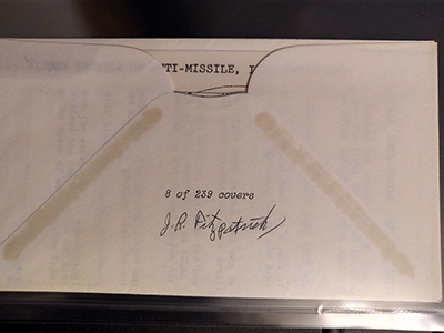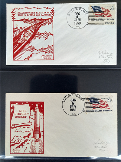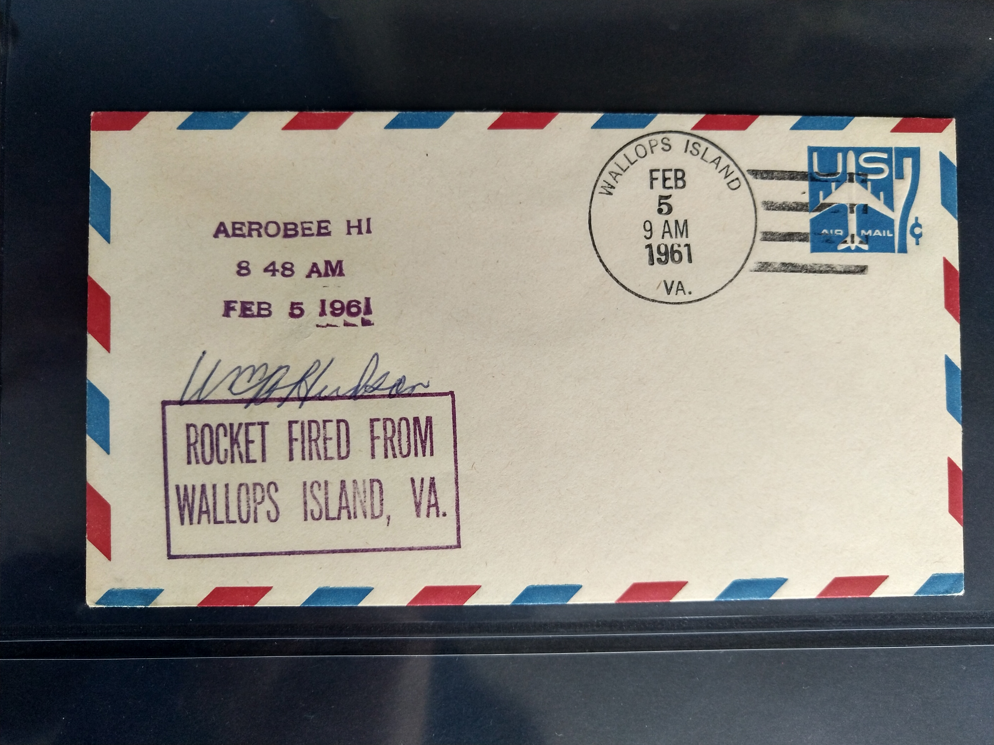 William B. Hudson; was the Postmaster on Wallops Island. His early cacheted covers featured a box. Quite a few were signed. Example below.  Paul and Chris Calle; I am aware of signed covers by this father and son pair, but I do not possess any, and they mostly lie outside my collection timeframe. The others; I have never seen any examples of autographs for Clyde Sarzin, Herman Fluegel, John Zaso, or indeed any other "cachet maker." I would love to see examples of they exist. |