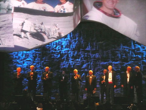I greatly enjoyed the next night too aboard the USS Midway aircraft carrier, and escorting the astronauts up on stage to receive their medals. It was meticulously choreographed, with lighting, curtain and music cues along with special spots for each astronaut to stand, and I enjoyed my small part in it. Standing on stage with those guys is always a little surreal - one of those "if you had told me when I was fifteen that..." moments...