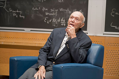 Collins, who also appeared at MIT last year as part of AeroAstro's 100th anniversary celebration, was back on campus this week to speak to a class on the history of the Apollo program. The course, "Engineering Apollo," is taught by David Mindell, the Frances and David Dibner Professor of the History of Engineering and Manufacturing and a professor in the Department of Aeronautics and Astronautics.