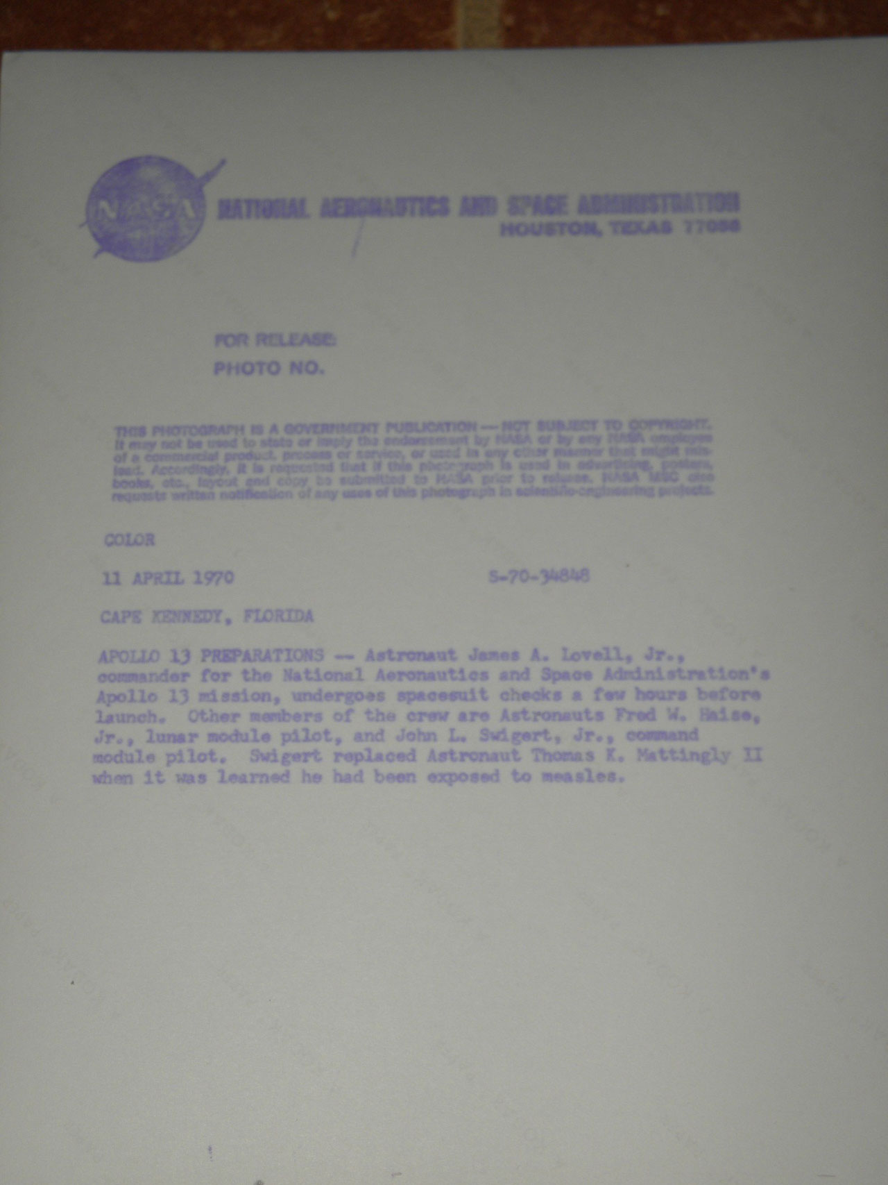 Topic: FS: Apollo 13 astronauts-signed photographs