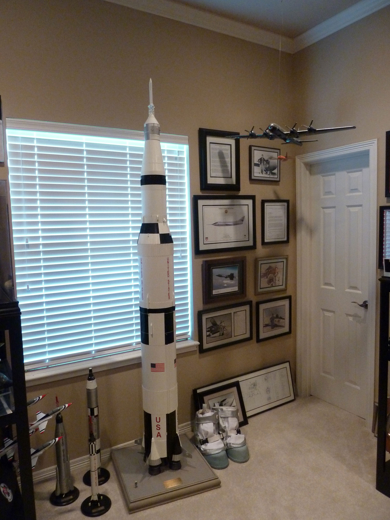 A friend of mine and fellow cS member (moonguyron) is looking to sell his entire space exploration collection. Some highlights include 1:48 scale models (Mercury Redstone/Atlas, Titan, Saturn V, B52/X-15, B29-X-1, 1:20 scale F-1 and J-2 engines, 1:24 scale Lunar Module, 1:12 Mercury, 1:1 scale Apollo hand controllers, six moonwalker dioramas, signed Alan Bean artwork, 30+ signed and 100+ unsigned books, approximately 100 VCR/DVD presentations, and much more! He is looking to sell the entire collection in one lot, with a substantial discount for cS members. Please see the pics below to get an idea of the collection. A complete list of all items, as well as close-up pics of all of the items is available upon request. Serious inquiries only please!