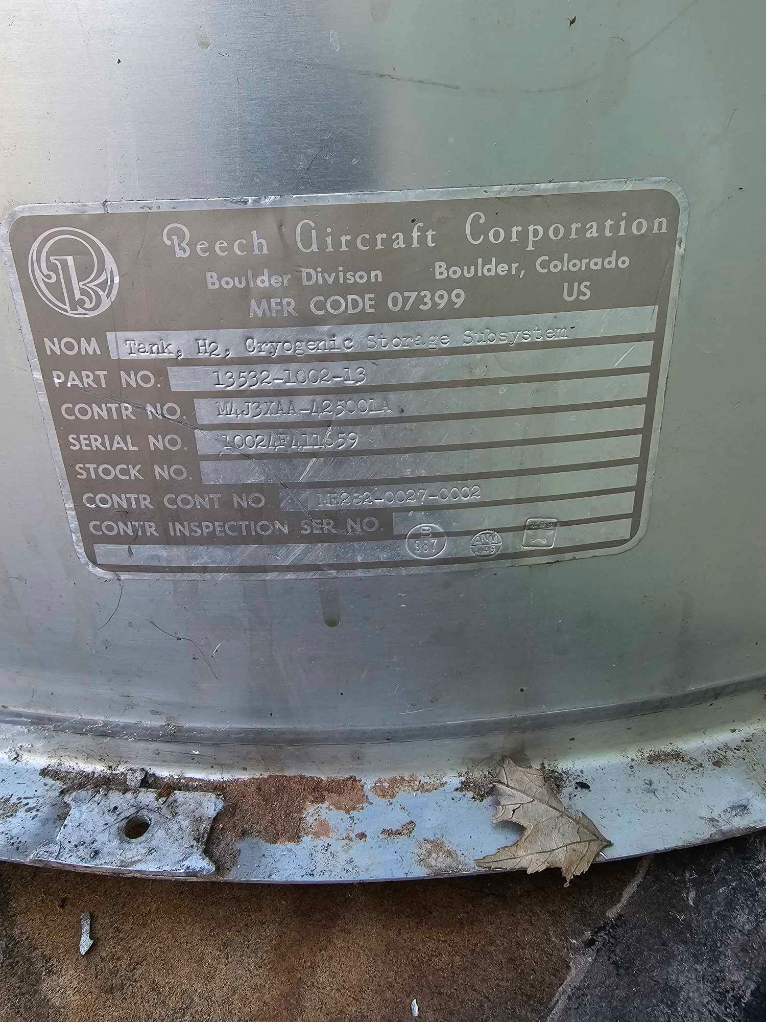 Topic: FS: Apollo SM Beech Aircraft H2 cryogenic tank