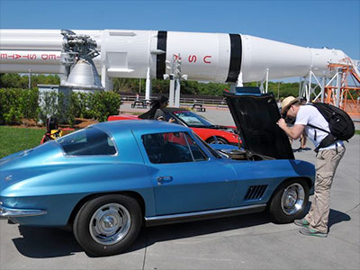 Florida Today reports that Merritt Island resident Joe Crosby displayed Neil Armstrong's 1967 Corvette Sting Ray in the Rocket Garden at the Kennedy Space Center Visitor Complex today (April 9). Crosby, a retired Brevard County Sheriff's Office west precinct commander, bought the car from an undisclosed Georgia owner in February 2012. He initially offered the vehicle on eBay — where it garnered offers exceeding $250,000.Instead, he decided to keep Armstrong's Corvette and restore it. |