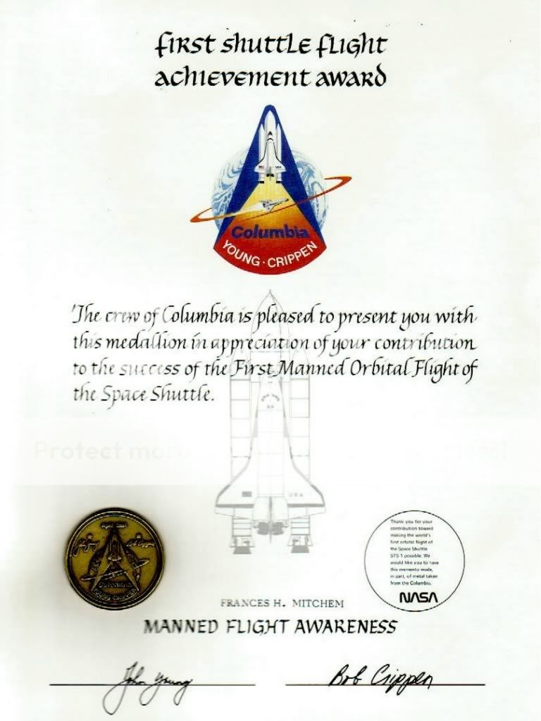 Pretty sure that these MFA awards were liberally distributed to early STS employees and the two crew member signatures were pre-printed as part of the presentation.