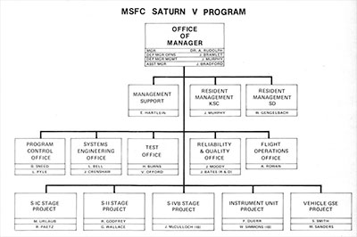 Are you wanting information regarding the planning of the Apollo moon landing project or the Saturn V development program?NASA's Moonport: A History of Apollo Launch Facilities and Operations (SP-4204) has some good detail regarding the Apollo Program, while Stages to Saturn (SP-4206) has some good information regarding the Saturn V program, including Chapter 9: Coordination: Men and Machines.  |