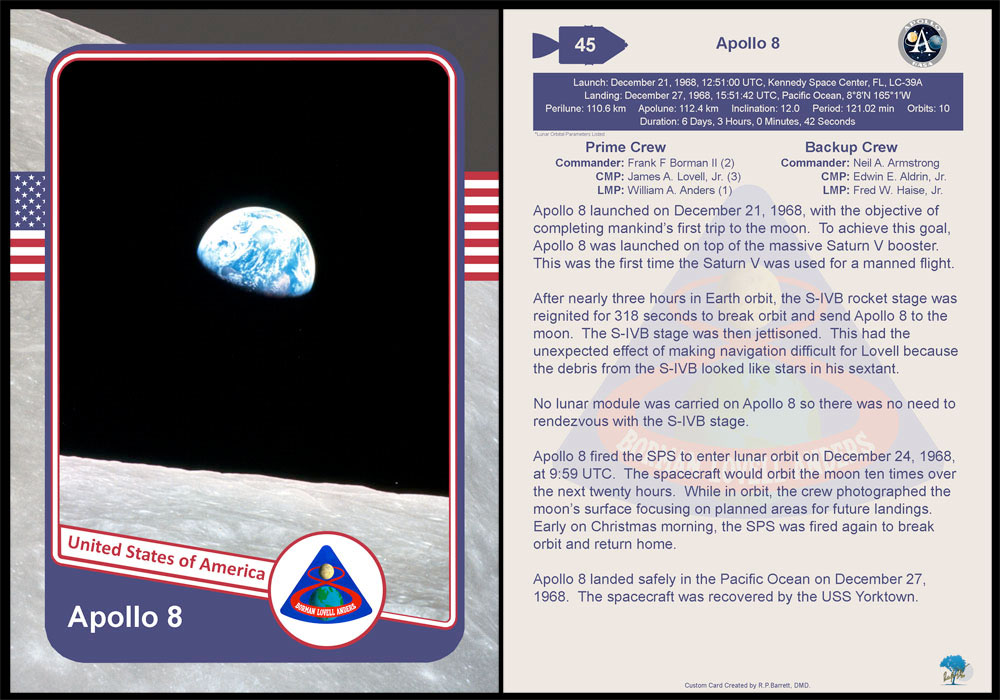 Very good job with the trading cards project. Keep up the great work. Hopefully, you will be able to continue until the present day with ISS, Commercial Crew Program and the SLS/Orion and our return to the Moon? |