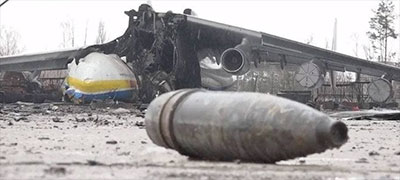 This is apparently a screenshot from Russian propaganda footage showing remnants of Ukraine's An-225 Mriya (I am sure they blamed it on Ukraine):