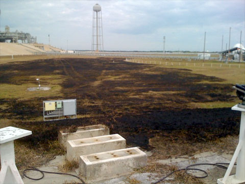There was some damage to the flame trench as well. Fondue and concrete (but not bricks) from the original construction of 39A was forced free.