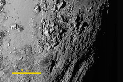 New close-up images of a region near Pluto's equator reveal a giant surprise: a range of youthful mountains rising as high as 11,000 feet (3,500 meters) above the surface of the icy body.