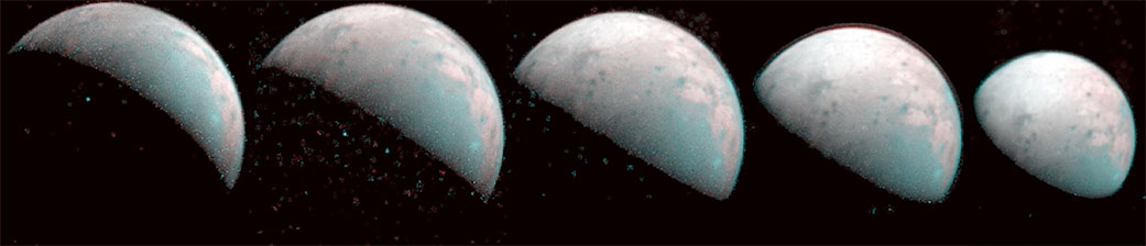 NASA release NASA's Juno Mission Halfway to Jupiter ScienceOn Dec. 21, at 8:49:48 a.m. PST (11:49:48 a.m. EST) NASA's Juno spacecraft will be 3,140 miles (5,053 kilometers) above Jupiter's cloud tops and hurtling by at a healthy clip of 128,802 mph (207,287 kilometers per hour). This will be the 16th science pass of the gas giant and will mark the solar-powered spacecraft's halfway point in data collection during its prime mission.  Above: A south tropical disturbance has just passed Jupiter's iconic Great Red Spot, and is captured stealing threads of orange haze from the Great Red Spot in this series of color-enhanced images from NASA's Juno spacecraft. (NASA/JPL-Caltech/SwRI/MSSS/Gerald Eichstadt/Sean Doran) Juno is in a highly-elliptical 53-day orbit around Jupiter. Each orbit includes a close passage over the planet's cloud deck, where it flies a ground track that extends from Jupiter's north pole to its south pole. "With our 16th science flyby, we will have complete global coverage of Jupiter, albeit at coarse resolution, with polar passes separated by 22.5 degrees of longitude," said Jack Connerney, Juno deputy principal investigator from the Space Research Corporation in Annapolis, Maryland. "Over the second half of our prime mission - science flybys 17 through 32 - we will split the difference, flying exactly halfway between each previous orbit. This will provide coverage of the planet every 11.25 degrees of longitude, providing a more detailed picture of what makes the whole of Jupiter tick." Launched on Aug. 5, 2011, from Cape Canaveral, Florida, the spacecraft entered orbit around Jupiter on July 4, 2016. Its science collection began in earnest on the Aug. 27, 2016, flyby. During these flybys, Juno's suite of sensitive science instruments probes beneath the planet's obscuring cloud cover and studies Jupiter's auroras to learn more about the planet's origins, interior structure, atmosphere and magnetosphere. "We have already rewritten the textbooks on how Jupiter's atmosphere works, and on the complexity and asymmetry of its magnetic field," said Scott Bolton, principal investigator of Juno, from the Southwest Research Institute in San Antonio. "The second half should provide the detail that we can use to refine our understanding of the depth of Jupiter's zonal winds, the generation of its magnetic field, and the structure and evolution of its interior." Two instruments aboard Juno, the Stellar Reference Unit and JunoCam, have proven to be useful not only for their intended purposes, but also for science data collection. The Stellar Reference Unit (SRU) was designed to collect engineering data used for navigation and attitude determination, so the scientists were pleased to find that it has scientific uses as well. "We always knew the SRU had a vital engineering job to do for Juno," said Heidi Becker, Juno's radiation monitoring investigation lead at NASA's Jet Propulsion Laboratory in Pasadena, California. "But after making scientific discoveries in Jupiter's radiation belts and taking a first-of-its-kind image of Jupiter's ring, we realized the added value of the data. There is serious scientific interest in what the SRU can tell us about Jupiter." The JunoCam imager was conceived as an outreach instrument to bring the excitement and beauty of Jupiter exploration to the public. "While originally envisioned solely as an outreach instrument to help tell the Juno story, JunoCam has become much more than that," said Candy Hansen, Juno co-investigator at the Planetary Science Institute in Tucson, Arizona. "Our time-lapse sequences of images over the poles allow us to study the dynamics of Jupiter's unique circumpolar cyclones and to image high-altitude hazes. We are also using JunoCam to study the structure of the Great Red Spot and its interaction with its surroundings." The SRU and JunoCam teams both now have several peer-reviewed science papers -either published or in the works - to their credit. |