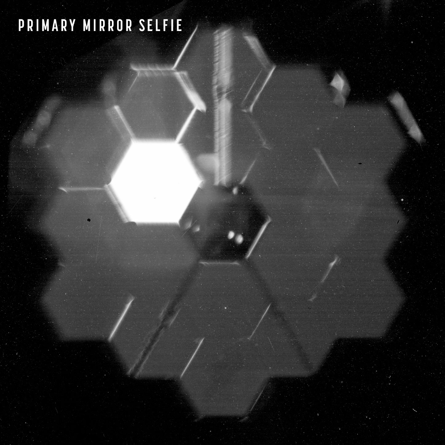Above: This "selfie" was created using a specialized pupil imaging lens inside of the NIRCam instrument that was designed to take images of the primary mirror segments instead of images of space. This configuration is not used during scientific operations and is used strictly for engineering and alignment purposes. In this case, the bright segment was pointed at a bright star, while the others aren't currently in the same alignment. This image gave an early indication of the primary mirror alignment to the instrument. (NASA)