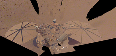 Above: NASA's InSight Mars lander took this final selfie on April 24, 2022, the 1,211th Martian day, or sol, of the mission. The lander's solar panels have become covered with dust since the lander touched down on Mars in November 2018, which has led to a gradual decline in its power level. (NASA/JPL-Caltech)