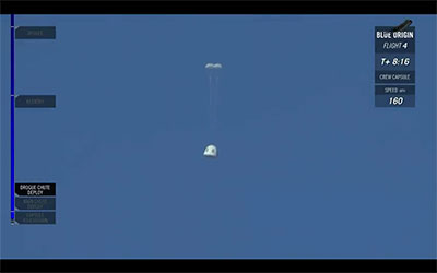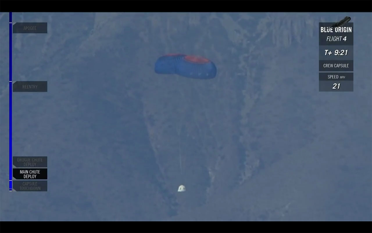 We're planning to demonstrate the redundancies built into the capsule on this re-flight of the vehicle by intentionally failing one drogue and one main parachute during descent. This should occur around 7.5 minutes into the flight at an altitude of 24,000 feet.