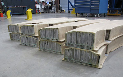 Above: Sacrificial bumpers removed from Crew Capsule after flight for inspection, barely crushed.