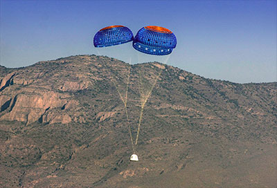 A parachute failure is a credible scenario in even the most carefully designed recovery system, so a robust vehicle needs to accommodate that possibility through redundancies and margin designed and built into each subsystem that protects the astronauts during landing. The New Shepard crew capsule is designed to safely land the crew even in the event of a parachute failure.
