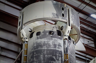 Above: New Shepard booster undergoing integration and testing of the sensor experiment at Blue Origin's West Texas Launch Site.