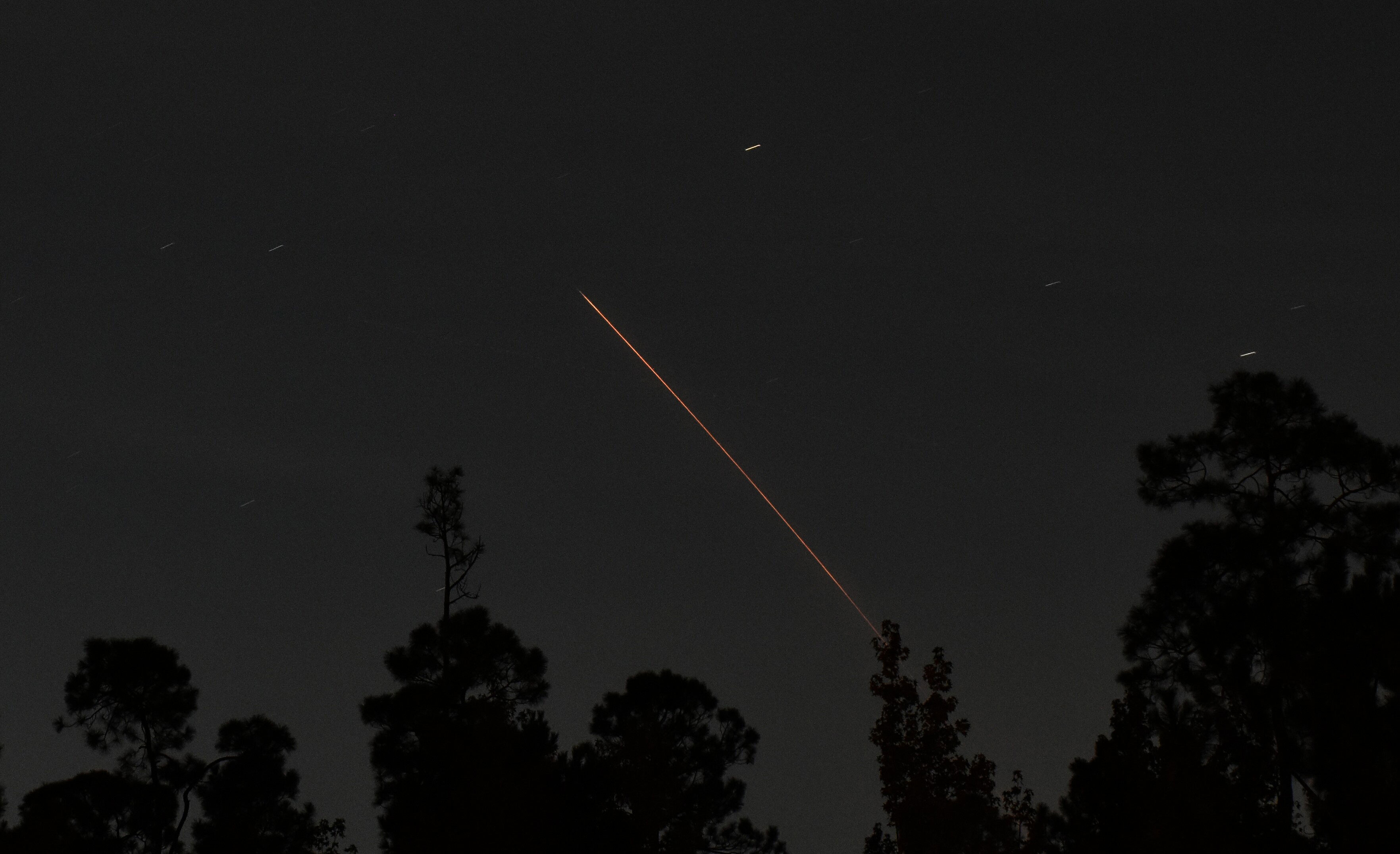 I was surprised to be able to see the second stage burning from Charlotte, North Carolina, but even more surprised when the bright green meteor dropped right across Crew Dragon’s flight path and exploded behind the trees!