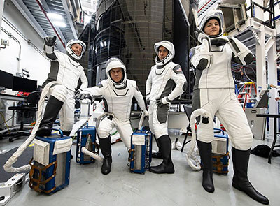 SpaceX Crew-3 porait with NASA astronauts Raja Chari, Thomas Marshburn, Kayla Barron and ESA astronaut Matthias Maurer.