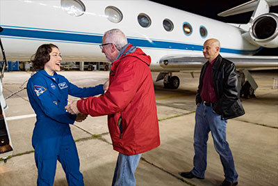 This morning, family, friends and coworkers were reunited with the astronaut, who landed in Kazakhstan on February 6 after a record-breaking 328-day mission to the space station. Congrats Christina!
