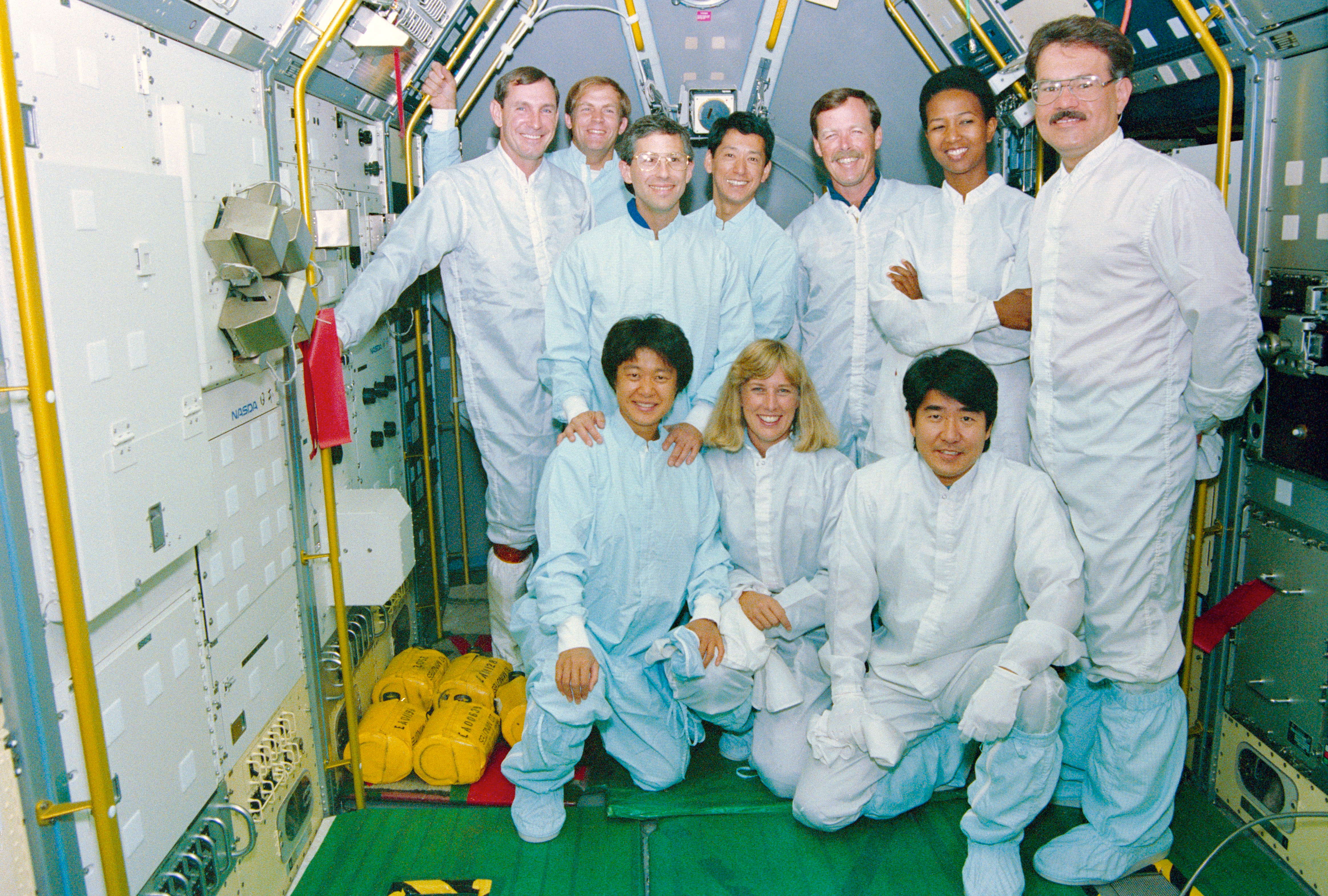 Although a few months late in posting, it is noted that microbiologist Stanley Koszelak, who was chosen as a backup payload specialist for space shuttle Endeavour's STS-47 mission in 1992, died on Oct. 10, 2022. He was 68. From his wife's Facebook page: Stan had a motorcycle accident coming down a mountain road, hitting a rock, and losing control. He sustained a severe traumatic brain injury. In the below photo of the STS-47 prime and backup crew members, from left, are back-up payload specialist Chiaki Mukai; mission specialist Jan Davis; and backup payload specialist Takao Doi. Standing, from the left, are pilot Curt Brown; payload commander Mark Lee; Jay Apt; payload specialist Mamoru Mohri; commander Hoot Gibson; Mae Jemison; and back-up payload specialist Stan Koszelak. |