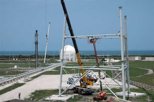 It seems that the workers erecting the Ares lightning protection towers made good use of the holiday break. This photo was taken on December 22, 2008: