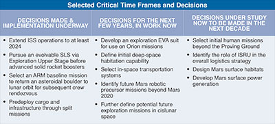 NASA is charting new territory, and we will adapt to new scientific discoveries and new opportunities. Our current efforts are focused on pieces of the architecture that we know are needed. In parallel, we continue to refine an evolving architecture for the capabilities that require further investigation. These efforts will define the next two decades on the journey to Mars.