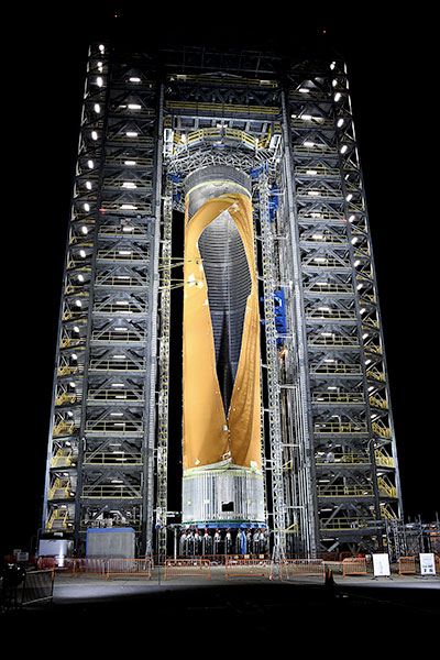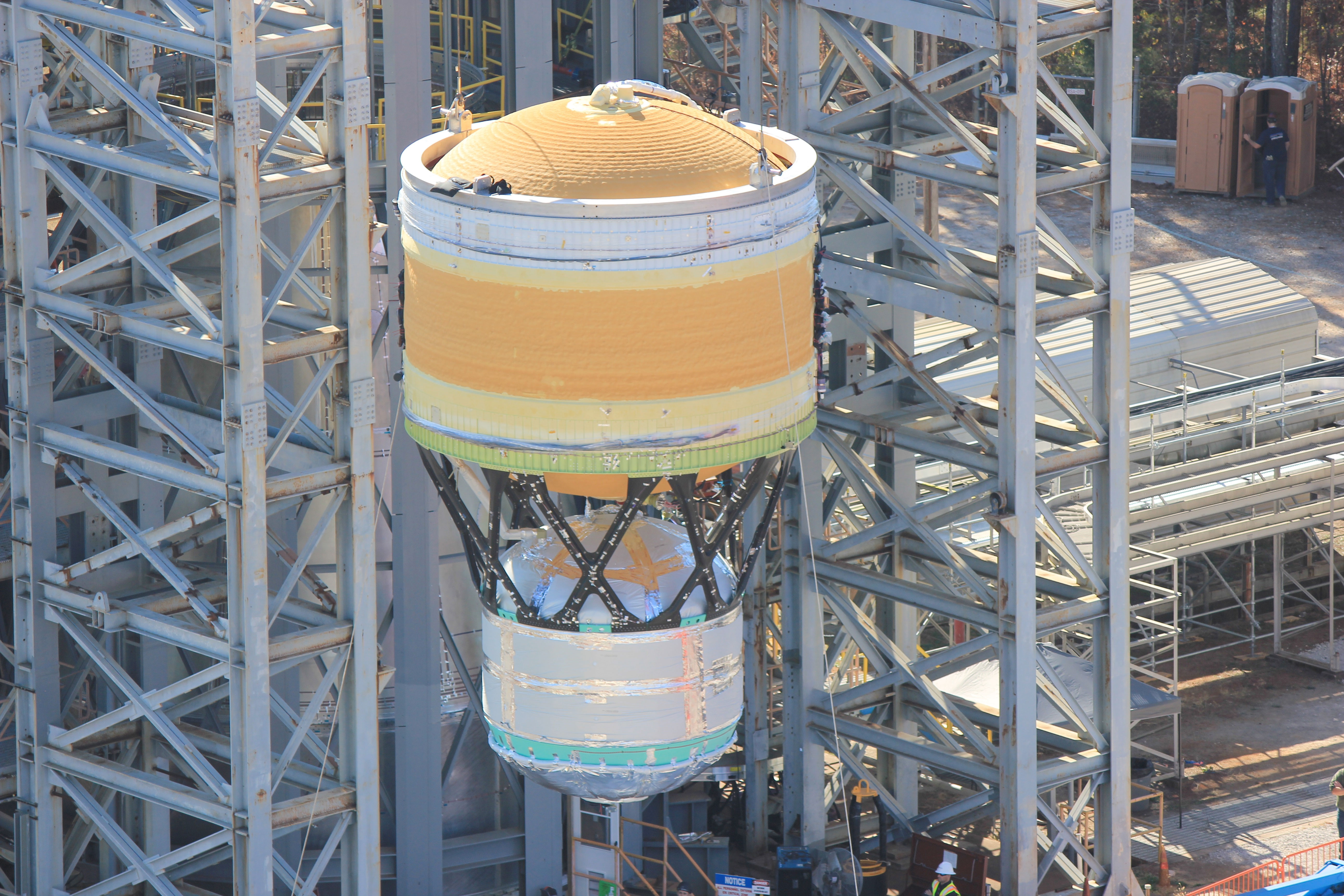 The test version ICPS joins other structural test articles and simulators that make up the upper portion of the rocket. When all the hardware is completed, engineers will stack them together and move the 56-foot-tall structure to a test stand at Marshall.