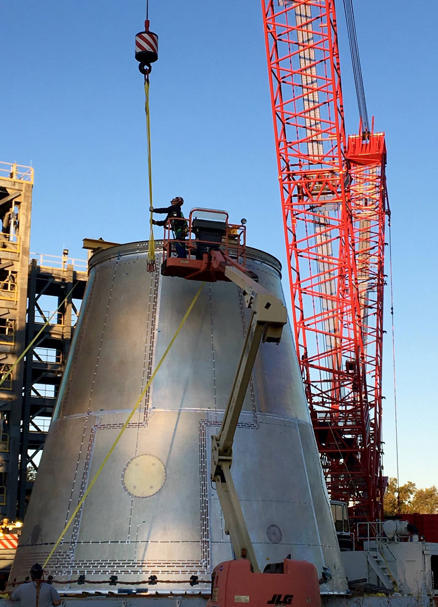 During launch, the engines and boosters will produce more than 8 million pounds of thrust, requiring the engine section to be incredibly strong.