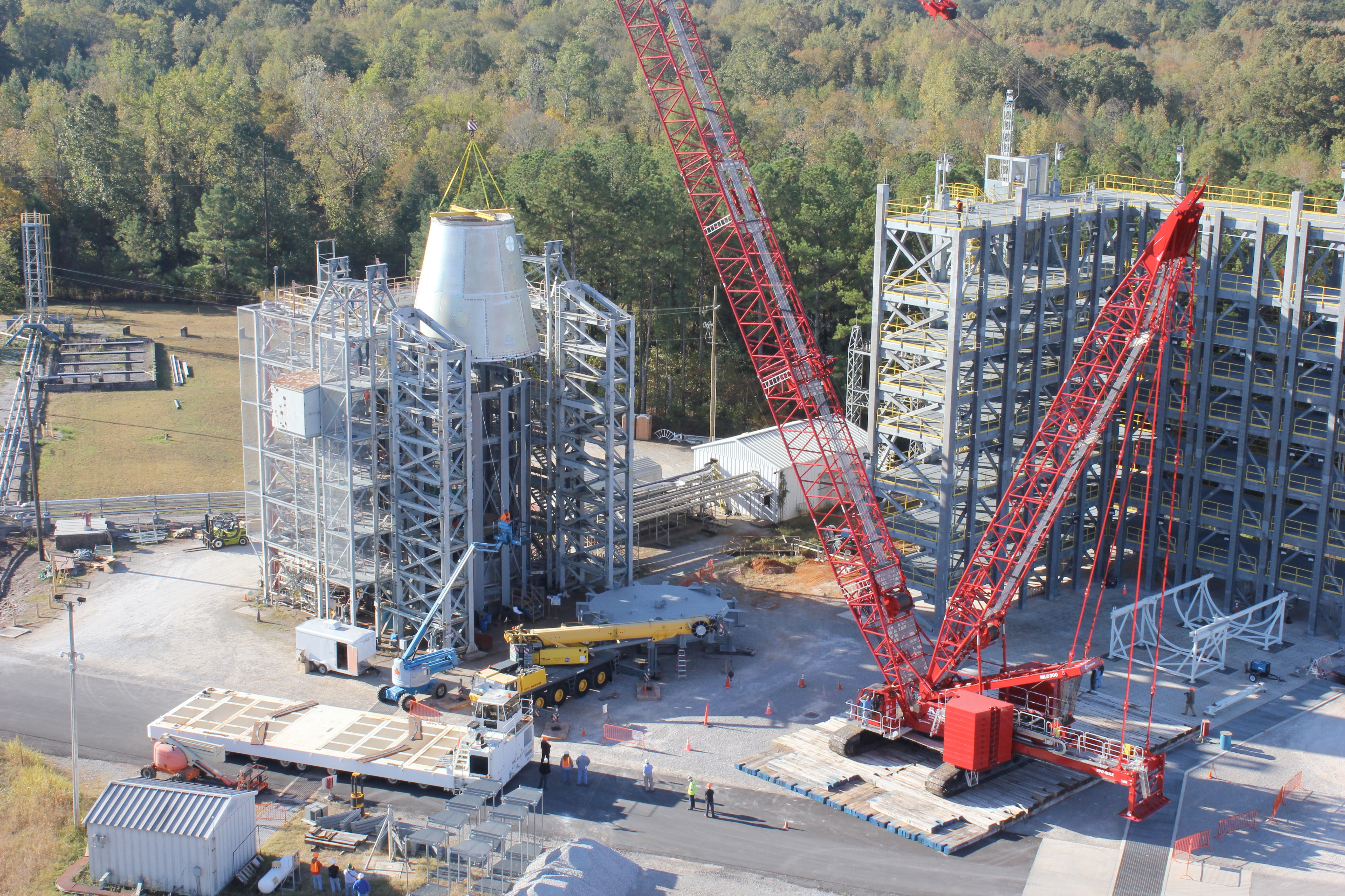 The qualification articles are almost exact to flight hardware specifications. The core stage simulator was loaded into the test stand Sept. 21, with the LVSA following on Oct. 12. The other three qualification articles and the Orion simulator will complete the stack later this fall. Testing is scheduled to begin in early 2017.