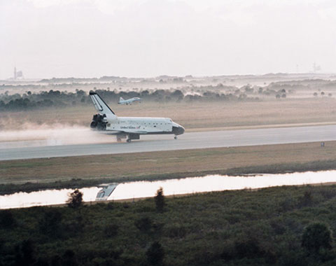 Was there at the SLF and remember worrying in the early morning darkness and fog that this shuttle landing would probably be sent to California like the previous scheduled attempt.