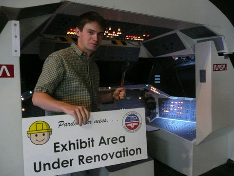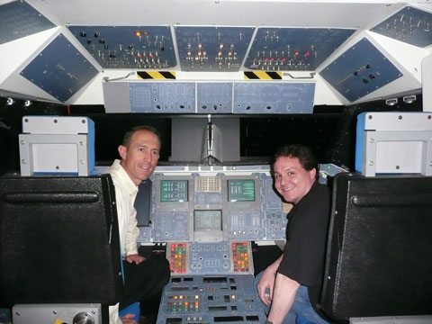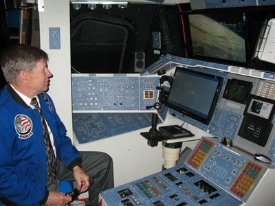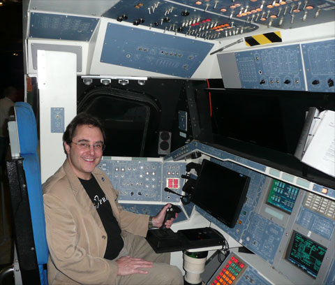 Andy Chaikin tries his hand at the Shuttle Simulator... |