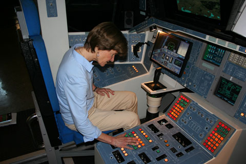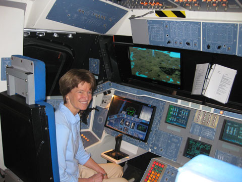 Sally Ride "flight tested" our shuttle simulator today...  |