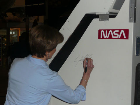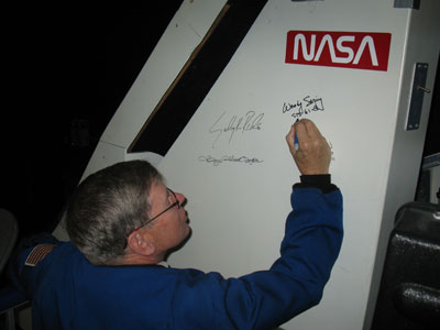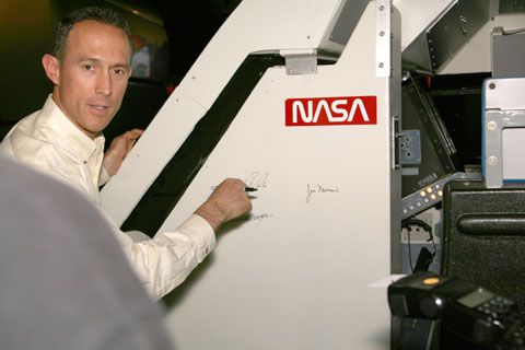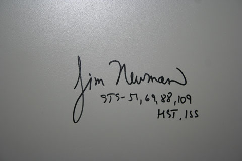 As part of our Space Day events, astronaut Jim Newman tried out (and signed) our shuttle simulator. More photos of the day's events on our blog.