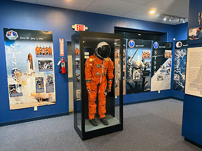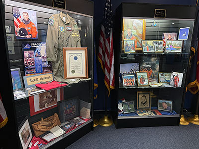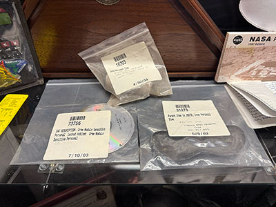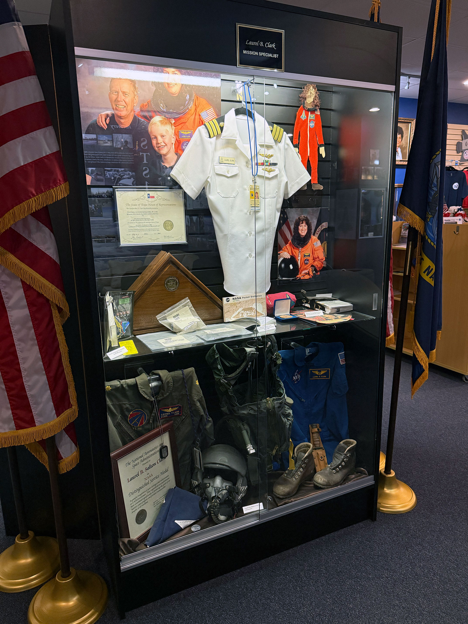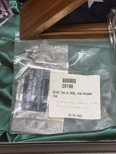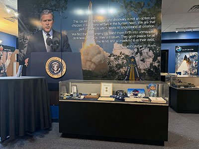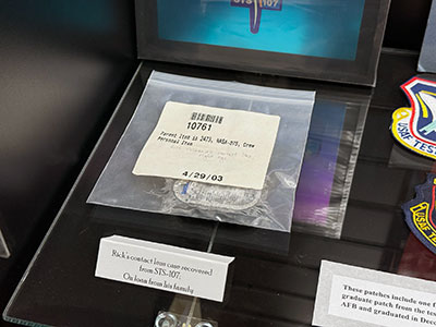 Unique to this museum are items that were on board Columbia as part of the astronauts' personal items, which were found among the debris, returned to the families and then donated or loaned by them for exhibit.
