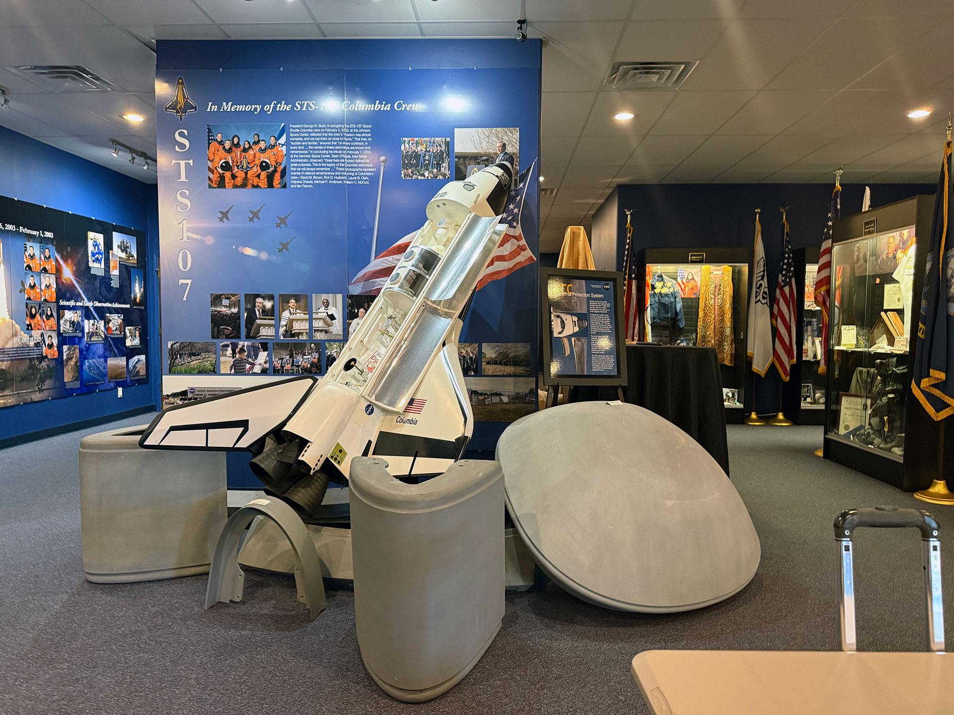 The area is devoted to the tragedy, including individual displays for the seven fallen astronauts and the two helicopter pilots who were lost during the recovery effort.