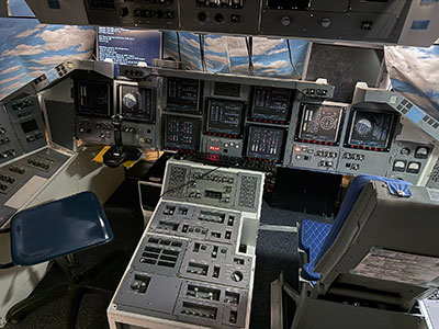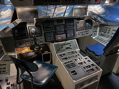 The third area is an educational areas, including this simulator which was donated to the museum still needs a good deal of work to be fully functional. The parts on the flight deck include many flown shuttle parts.